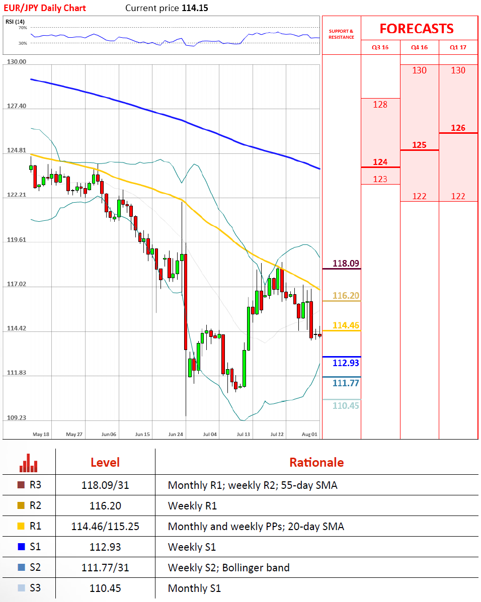 欧元/日元跌下114.00 - 技术分析 - Dukascopy Bank