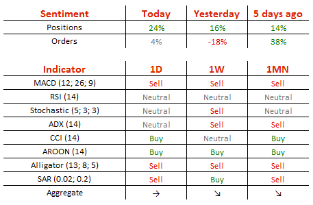 多头头寸从昨日的58%升至62%,卖单从59%降至48%。