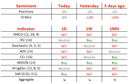 空头头寸从昨日的51%降至50%,卖单从57%降至54%。