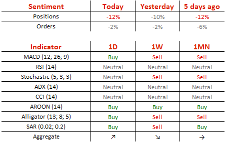 今日,空头头寸增加1%,至56%;但卖单却维持在昨日的51%不变。