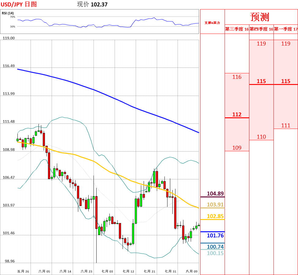 美元/日元关注布林带中轨主要阻力位 - 技术分析 - Dukascopy Bank