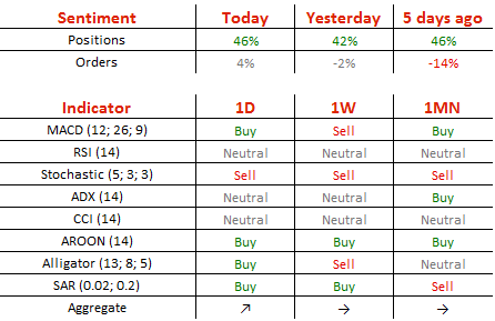 多头比例上升2%到73%,此时的买单比例则变化至52%。