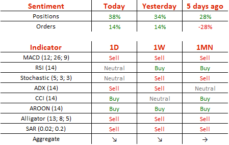 今日,多头头寸增加2%,至69%;买单维持在昨日的57%不变。