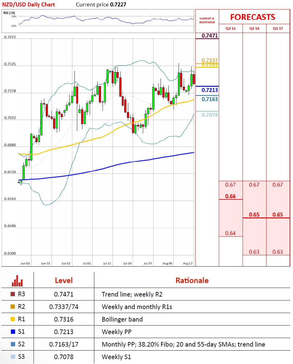纽元/美元早盘开盘走高,汇价冲向0.7324。不过汇价在布林线0.7316和周R1(0.7337)遇到阻力后开始转向下跌。日技术指标认为今天汇价还有上涨,因为汇价即将触碰的周PP0.7212或将成为下一步行情的动力来源。