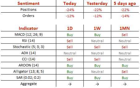 空头头寸从昨日的71%升至72%,卖单维持在56%不变。