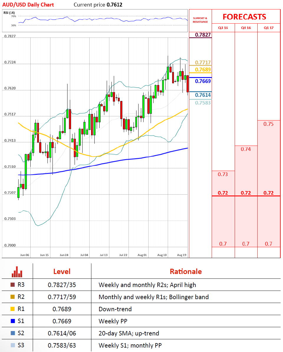 4年下行趋势线再临挑战,昨天回家收涨30点。早上开盘卖压城中,汇价直接跌向0.76。不过0.7650的强势不容忽视,这一位置已经坚守两周。货币对有望从日内低点反弹收上0.7650。虽然支撑和阻力都表现完整,但下周可能突破。