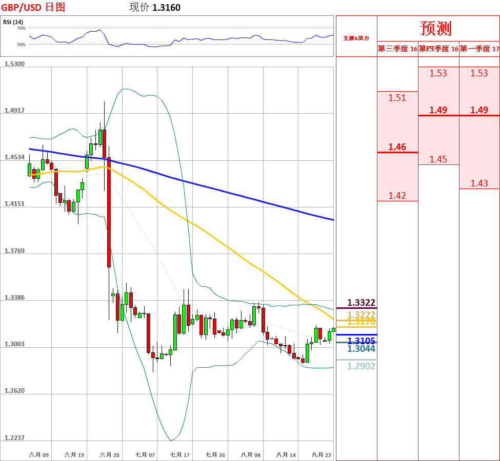 "尽管已经下跌很多,我们仍然认为英镑兑美元和欧元在接下来几个月将会继续走弱。" – ING (基于:Business Recorder)
