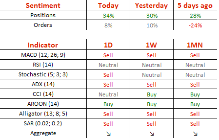 今日,多头头寸增加2%,至67%;买单减少了1%,至54%。