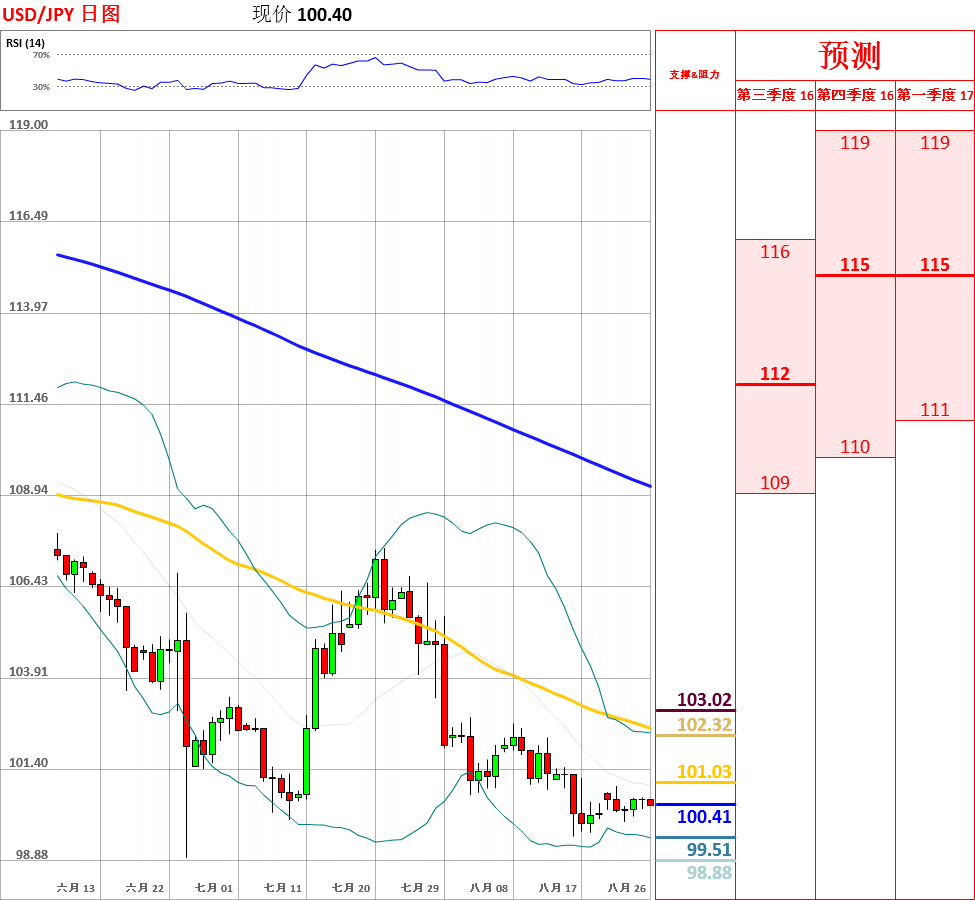 "如果耶伦发出对美国经济信心不足的言论,投资者会买入日元;但每当美元/日元跌至100下方,投资者会买入美元。因此,我认为美元/日元将会在当前水平停留一段时间。"- Masashi Murata, BBH(基于:Reuters)