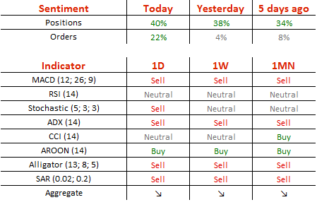昨日,美元兑日元窄幅震荡于100.30至100.62之间,收了带有上下影线的小阳线。近期,汇率纠结于100附近,形成三角形技术形态,但空头趋势依然保持完好。今日,上方关注101主要阻力位,下方关注三角形下沿100.20支撑位。如果向上突破101,汇率将会突破三角形,测试布林带中轨主要阻力位。此外,日线动能指标略微偏多,但4小时动能指标拐头向下,因此不排除继续区间盘整的可能性。