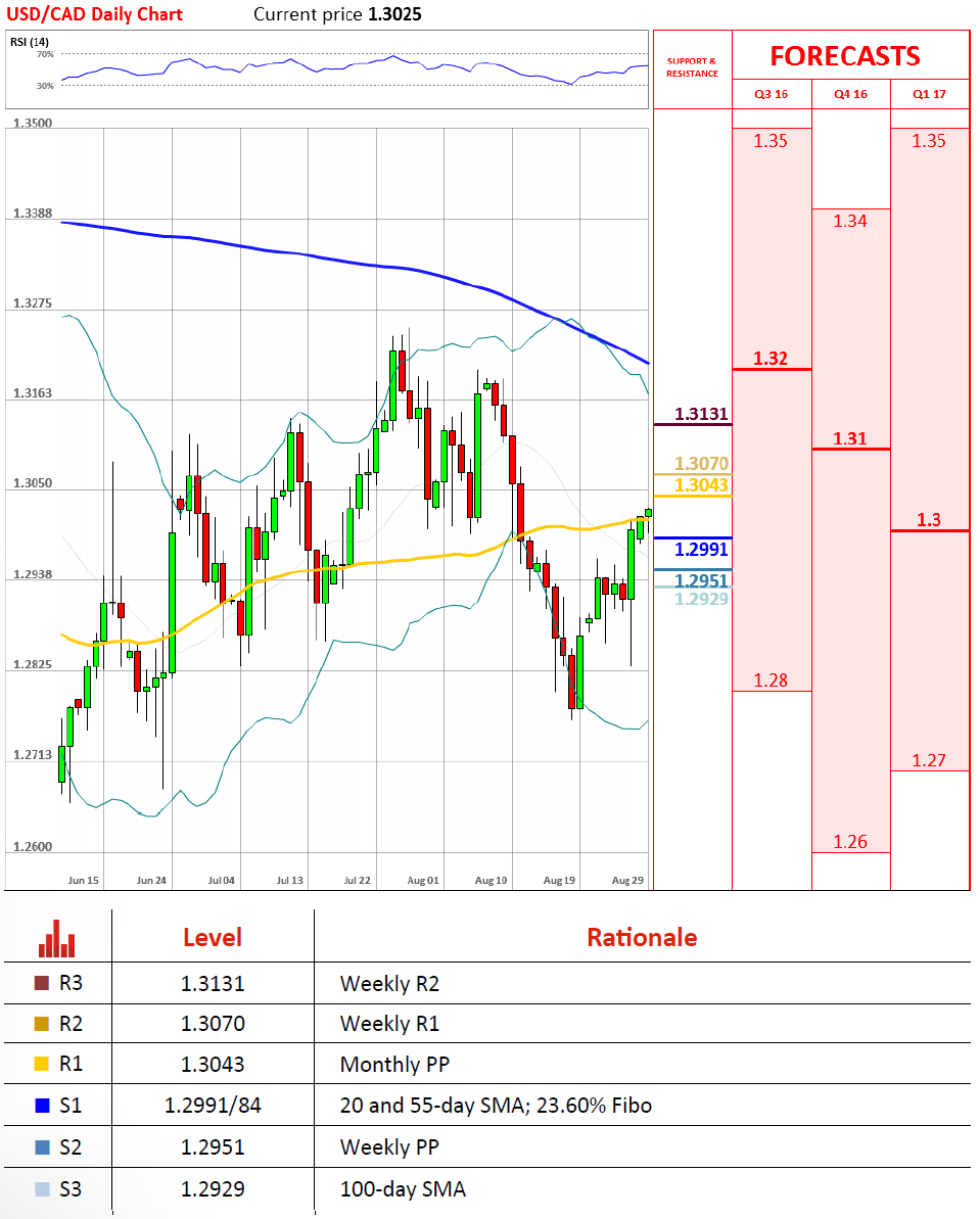 美元/加元周一继续走高,耶伦的讲话暗示美联储很有可能上调利率。货币对周一开盘落在1.2995,这一位置略低于周五收盘价所在1.3008。不过随后汇价便在支撑位收获足够动力开始反弹,周一盘中汇价冲破至1.3015。该货币对还可能继续上涨,下一个阻力位见于月PP 1.3043,货币对可能在周四面对这一位置。