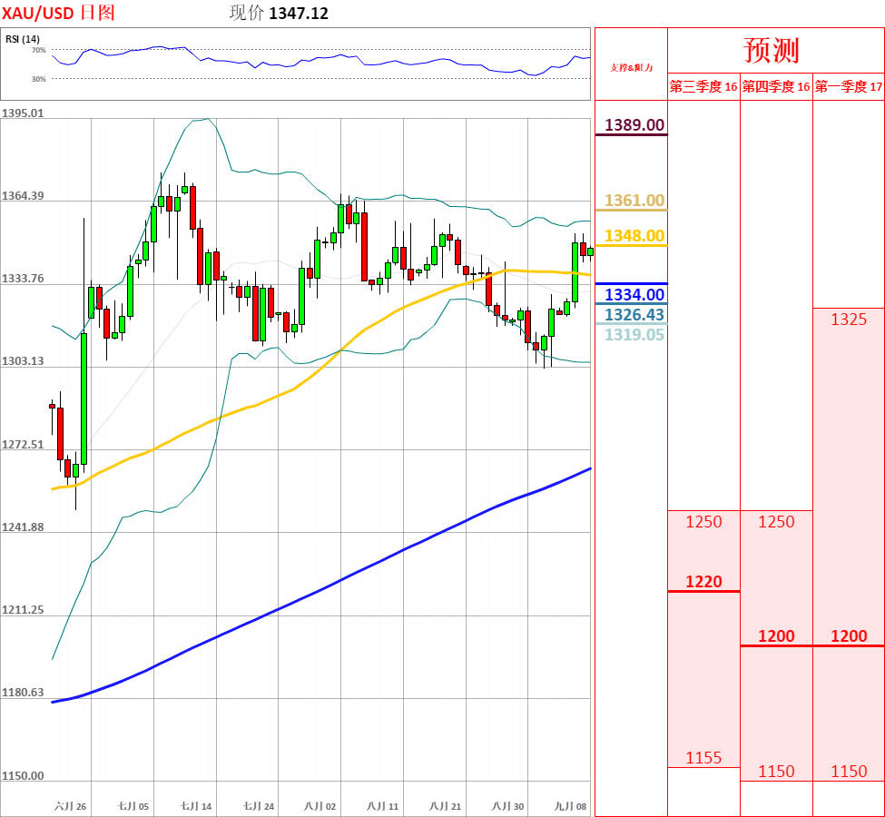 昨日,黄金窄幅震荡于1342.66至1352.56之间,收了上影线长于下影线的小阴线;目前短期均线粘合,因此不排除区间震荡的可能性。今日,上方关注昨日高点1352.56阻力位,下方关注55日均线支撑位。如果向上突破昨日高点,价格将会测试1360主要阻力位;但如若跌破55日均线,黄金将会测试布林带中轨和10日均线的支撑。