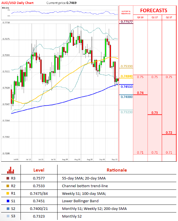 澳元/美元在两个技术位之间波动