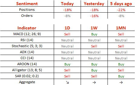 空头头寸维持在昨日的59%不变,卖单从58%降至54%。