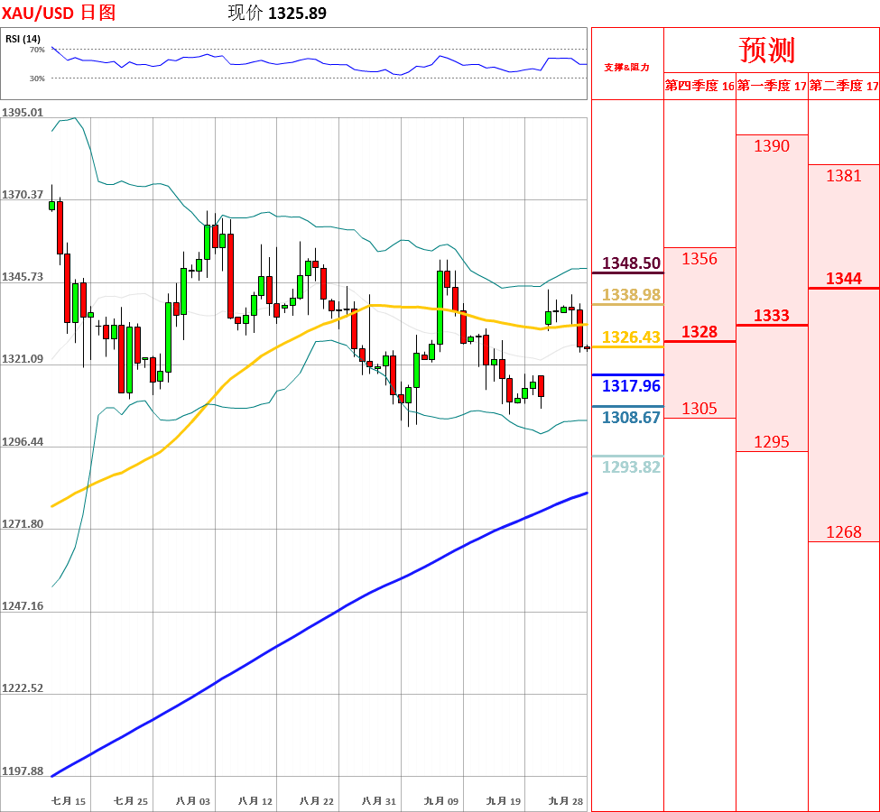 昨日,黄金反弹至1340附近后遇阻回落,一度向下突破55日均线和布林带中轨,收了中阴线,这是三日收十字星线后,向下破位的征兆。但是,目前中期多头趋势仍然保持完好,短期走势总体以高位宽幅震荡为主。今日,上方关注55日均线阻力位,下方关注1320支撑位。如果向上突破55日均线,价格将再次测试1340的阻力;但如若跌破1320,黄金将会试探1310和1300主要支撑位。此外,日线动能指标转空,但4小时动能指标超卖,因此不排除区间震荡的可能性。今日关注 美联储主席耶伦在众议院作证词。