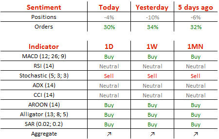今日,空头头寸减少3%,至52%;买单减少了2%,至65%。