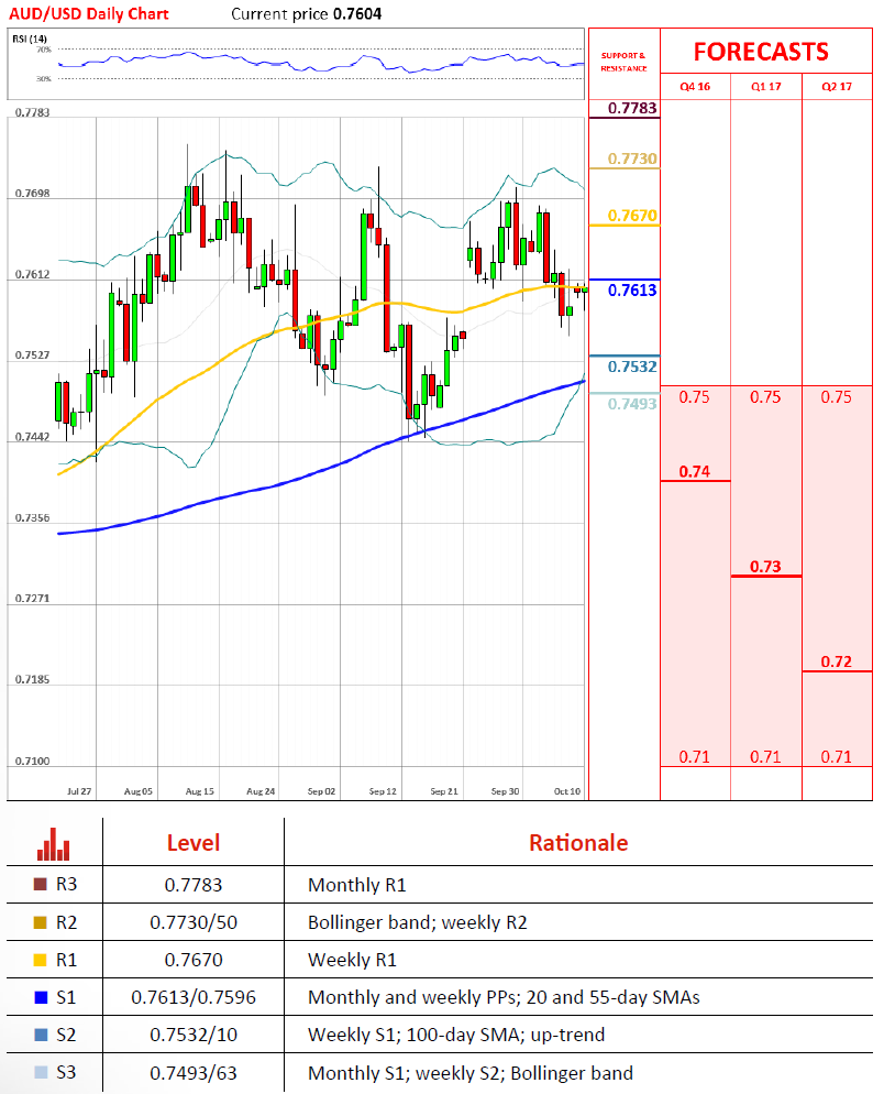 即使美国NFP数据疲软,也未能让澳元获得长足动力对美元上涨,开盘价上方即压着强势阻力位。今天澳元/美元小幅跳开,不过随后走低。我们最后可能看到澳元进一步走低,直到抵达5个月下行趋势线。技术指标目前给出看涨信号,不过要通过0.76仍需要等待。