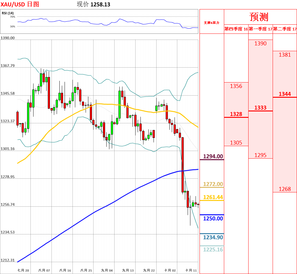 昨日,黄金反弹至1265附近后遇阻回落,收了带有长上影线的小阳线。目前,短期均线呈空头排列,短期趋势偏空;但是,日线动能指标超卖后拐头向上,因此不排除触底反弹的可能性,而且中期趋势仍旧偏多。今日,上方关注1265和1270阻力位,下方关注1250支撑位。如果向上突破1270,金价将会测试10日均线的阻力;但如若跌破1250,黄金将会试探上周低点1241.39主要支撑位。