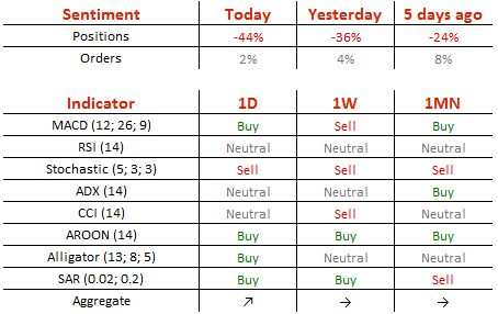 大多数交易者看空,72%头寸做空。而目前买/卖单则差不多持平为,前者为51%。