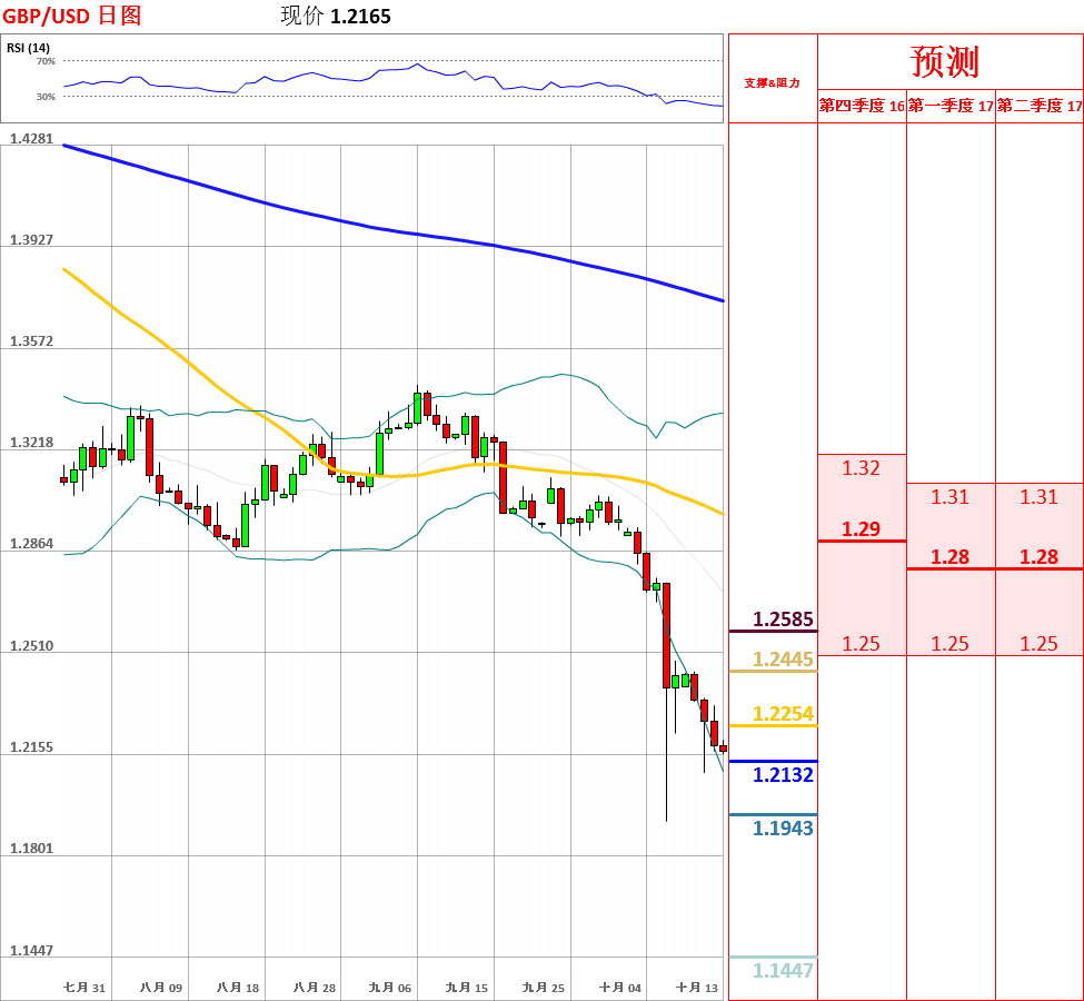 昨日,英镑兑美元反弹至5日均线附近后遇阻回落,收了带有较长上影线的阳线。目前短中长期均线呈空头排列,趋势完全偏空,但4小时动能指标超卖,因此不排除反弹的可能性。今日,上方关注5日均线和昨日高点1.2325阻力位,下方关注周二低点1.2089支撑位。如果向上突破昨日高点,汇率将测试1.2400阻力位;但如若跌破周二低点,英镑/美元将会逐步试探上周和历史低点1.1920主要支撑位。
