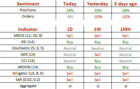 今日,多头头寸减少2%,至63%;卖单减少6%,至54%。