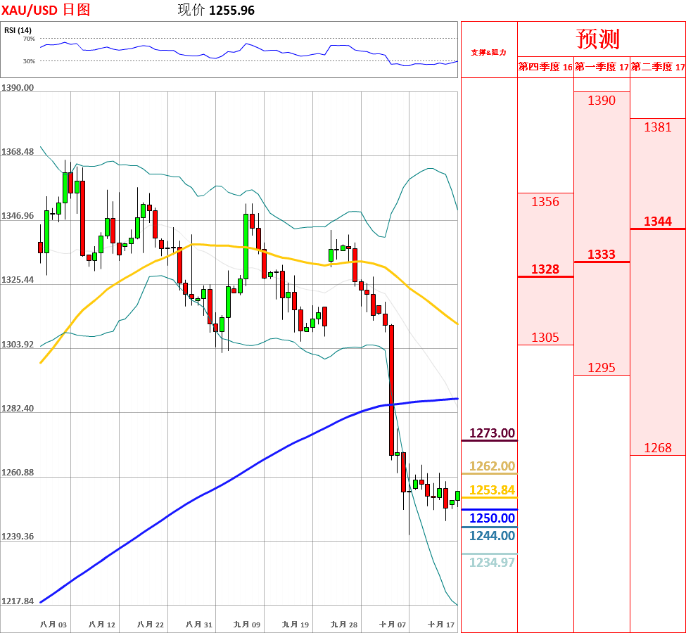 周五,黄金向下突破61.80%回撤率1249后小幅反弹,收了下影线长于上影线的阴线,周线收了小阴线。目前,短期均线呈空头排列,但日线动能指标发出反弹信号,因此不排除震荡反弹的可能性。今日,上方关注200日均线主要阻力位,下方关注1249主要支撑位。如果向上突破200日均线,金价将测试1270的阻力;但如若跌破1249,黄金将会再次试探1240的支撑。今日关注美联储副主席费希尔在纽约经济俱乐部的演说。