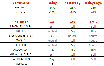 多头头寸从昨日的64%升至67%,卖单从57%升至58%。