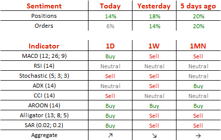 今日,多头头寸减少2%,至57%,买单减少了4%,至53%。