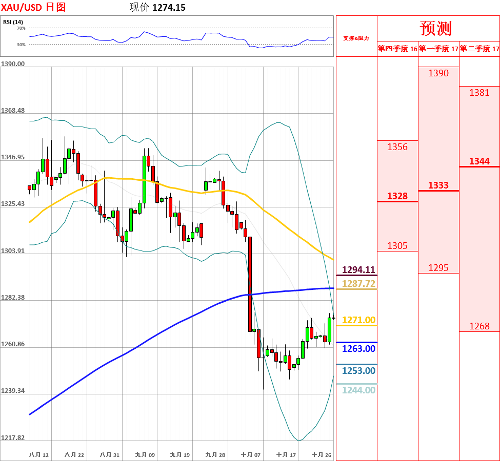昨日,黄金单边上涨,一度向上突破短期均线和200日均线,收了带有上下影线的阳线。近期,金价在61.80%回撤率1249附近止跌反弹,日线动能指标拐头向上,因此不排除继续反弹的可能性,但短期趋势依然偏空。今日,上方关注1280阻力位,下方关注布林带中轨和200日均线支撑位。如果向上突破1280,金价将测试3月高点1284.19的阻力;但如若跌破200日均线,黄金将试探10日均线支撑位。