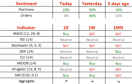今日,多头头寸减少5%,至60%;卖单大幅增加了27%,至54%。