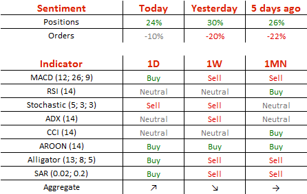 今日,多头头寸减少3%,至62%;卖单减少了5%,至55%。