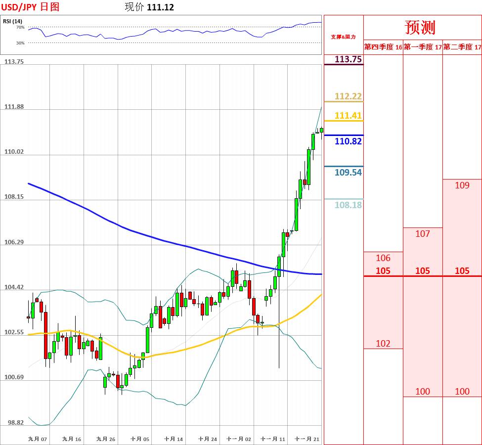 周五,美元兑日元震荡上行,收了带有下影线的阳线,周线收了大阳线。目前,短中期均线呈多头排列,走势总体震荡偏多。但是,鉴于日线动能指标超买,4小时MACD出现顶背离,因此不排除回调的可能性。今日,上方关注5月高点111.44主要阻力位,下方关注5日均线支撑位。如果向上突破5月高点,汇率将会测试4月高点111.88阻力位;但如若跌破5日均线,美元/日元将跌至109附近。