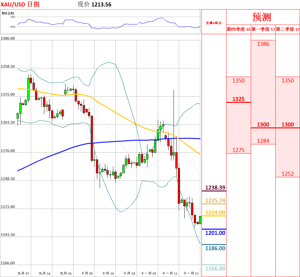 周五,黄金震荡下行,收了带有上下影线的阴线,周线连续两周收阴。目前,短中期均线呈空头排列,走势总体震荡偏空。但是,鉴于日线动能指标超卖,4小时MACD出现底背离,因此不排除反弹的可能性。今日,上方关注1220阻力位,下方关注1200主要支撑位。如果向上突破1220,价格将会测试1230阻力位;但如若跌破1200,下方空间将被打开。