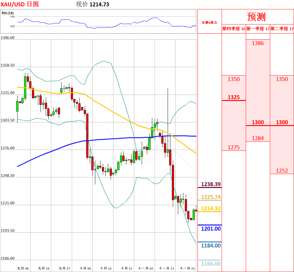 昨日,美元指数结束10连阳,黄金震荡反弹,收了带有上下影线的阳线。目前,短中期均线呈空头排列,走势总体震荡偏空。但是,鉴于日线动能指标超卖后拐头向上,因此不排除继续反弹的可能性。今日,上方关注1225阻力位,下方关注1210支撑位。如果向上突破1225,价格将有望突破10日均线;但如若跌破1210,黄金将再次测试1200主要支撑位。
