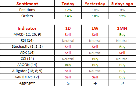 今日,多头头寸增加1%,至56%;买单减少2%,至57%。