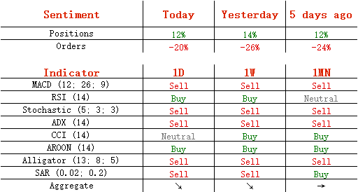 今日,多头头寸减少1%,至56%;卖单减少了3%,至60%。