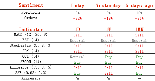 今日,多头头寸维持在54%不变,卖单从59%升至61%。