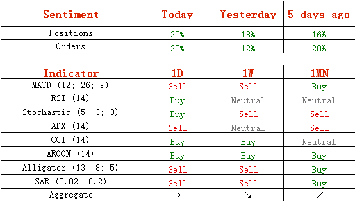 今日,多头头寸增加1%,至60%;买单增加了4%,至60%。