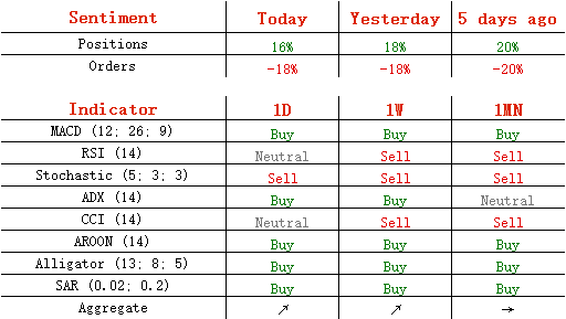 多头头寸从周五的59%降至58%,卖单维持在59%不变。
