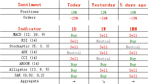 今日,多头头寸增加3%,至59%;卖单减少了2%,至60%。