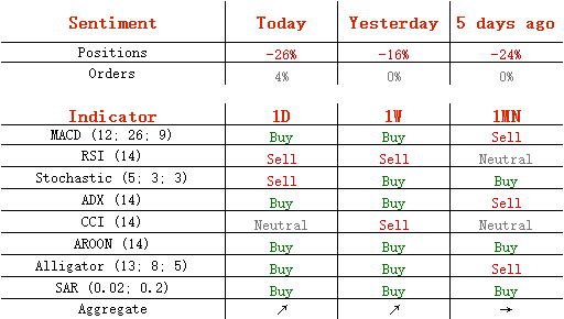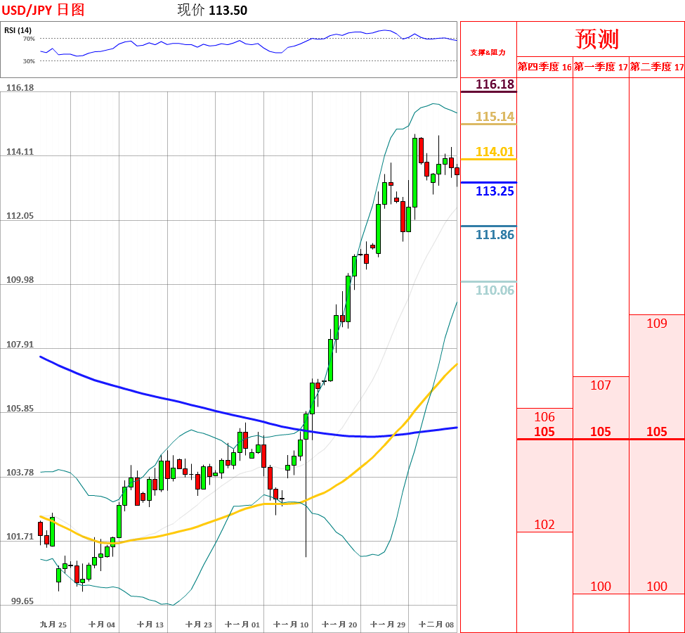 昨日,美元兑日元窄幅震荡于113.41至114.40,收了带有上下影线的小阴线。目前短中期均线呈多头排列,200日均线开始持平,走势总体震荡偏多。但是,鉴于日线动能指标转空,因此不排除回调的可能性。今日,上方关注昨日高点114.40阻力位,下方关注113.00支撑位。如果向上突破114.40,汇率将会在册测试115.00关口;但如若跌破113.00,美元/日元将试探112.50支撑位。