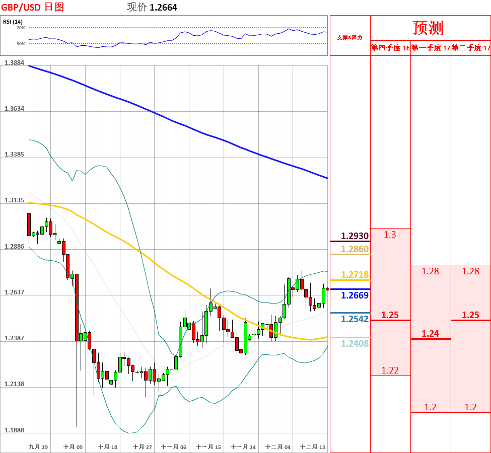 英镑/美元遇到布林带中轨的支撑 - 技术分析 - Dukascopy Bank