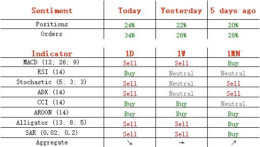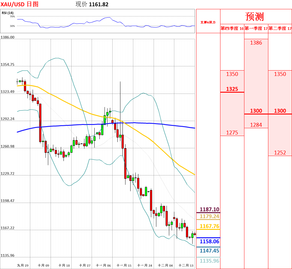 昨日,黄金先跌后涨,收了带有长上下影线的小阳线。目前,短中期均线呈空头排列,200日均线拐头向下,走势总体震荡偏空。但是,鉴于日线、4小时动能指标发出不同信号,因此不排除区间震荡的可能性。今日,上方关注短期均线阻力位,下方关注前期低点1157.24支撑位。如果向上突破短期均线,金价将会测试1170和1180主要阻力位;但如若跌破1157.24,黄金将会再次测试1150主要支撑位。