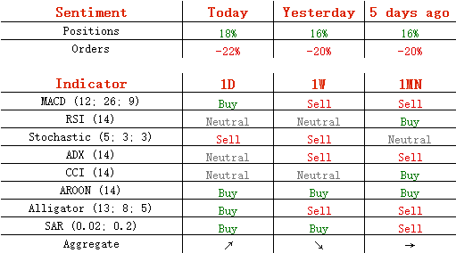 多头头寸从昨日的58%升至59%,卖单从60%升至61%。