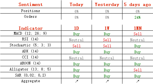 多头头寸从昨日的50%升至53%,买单维持在54%不变。