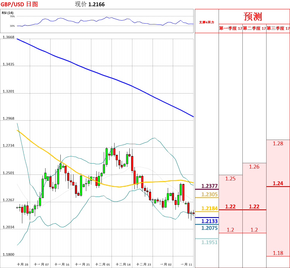 昨日,英镑兑美元窄幅震荡于1.2107至1.2190,收了下影线长于上影线的小阳线。目前,短中长期均线再次形成空头排列,走势总体震荡偏空。但是,鉴于4小时MACD绿柱变小,因此不排除反弹的可能性。今日,上方关注5日均线阻力位,下方关注昨日低点1.2107支撑位。如果向上突破5日均线,汇率将测试10日均线的阻力;但如若跌破1.2107,英镑/美元将试探1.2100关口。