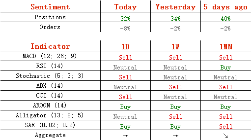 多头头寸从昨日的67%降至66%,卖单从51%升至54%。