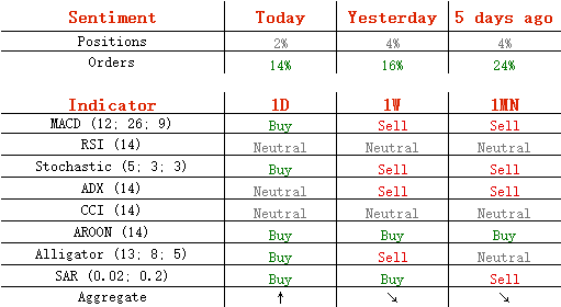 昨日,黄金涨至1220.00附近后遇阻回落,收了阴线。目前,短期均线呈多头排列,走势总体震荡偏多。但是,鉴于中期走势震荡偏空,日线、4小时动能指标拐头向下,因此不排除继续回调的可能性。今日,上方关注1210.00阻力位,下方关注1200.00主要支撑位。如果向上突破1210.00,金价将再次测试1220.00主要阻力位;但如若跌破1200.00,黄金将跌至布林带中轨附近。