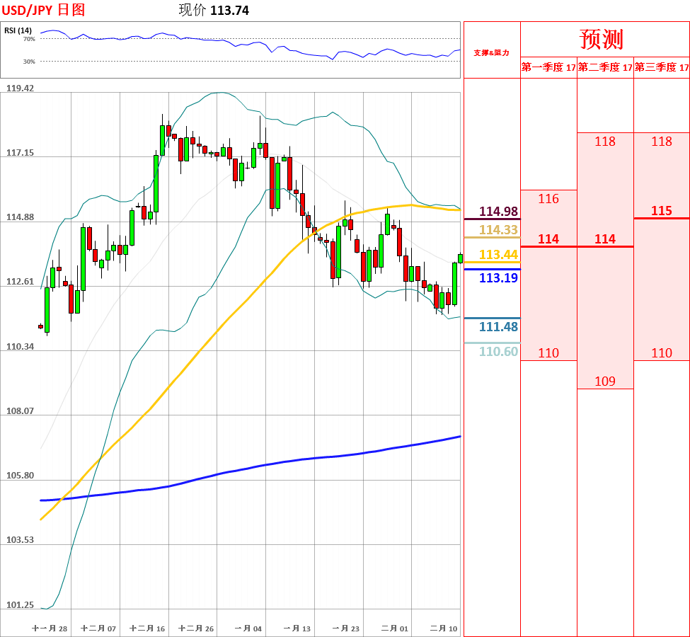美元/日元突破短期均线和布林带中轨 - 技术分析 - Dukascopy Bank