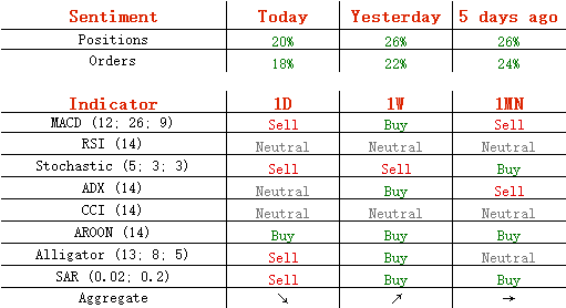 今日,多头头寸减少3%,至60%;买单减少了2%,至59%。